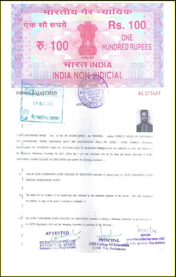 Affidavit & Undertaking 2016