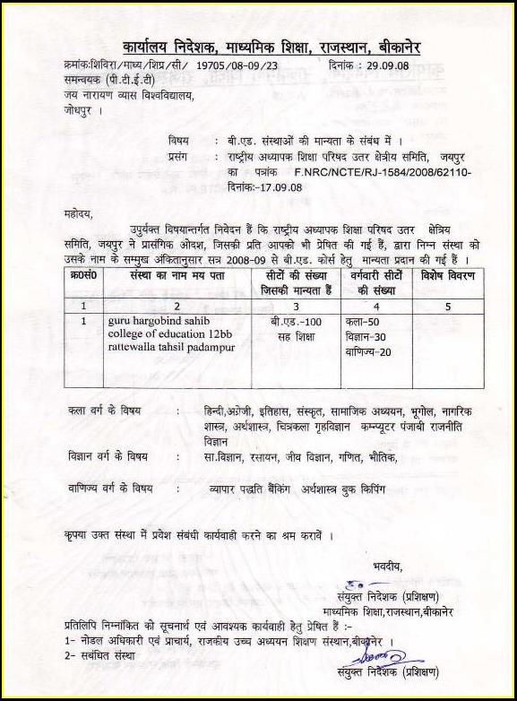 (Approved by NCTE & Govt. of Rajasthan and affliation to MGS University, Bikaner)