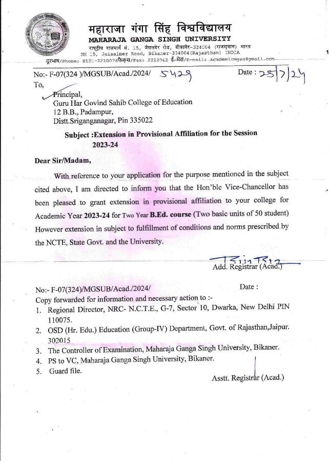 (Approved by NCTE & Govt. of Rajasthan and affliation to MGS University, Bikaner)